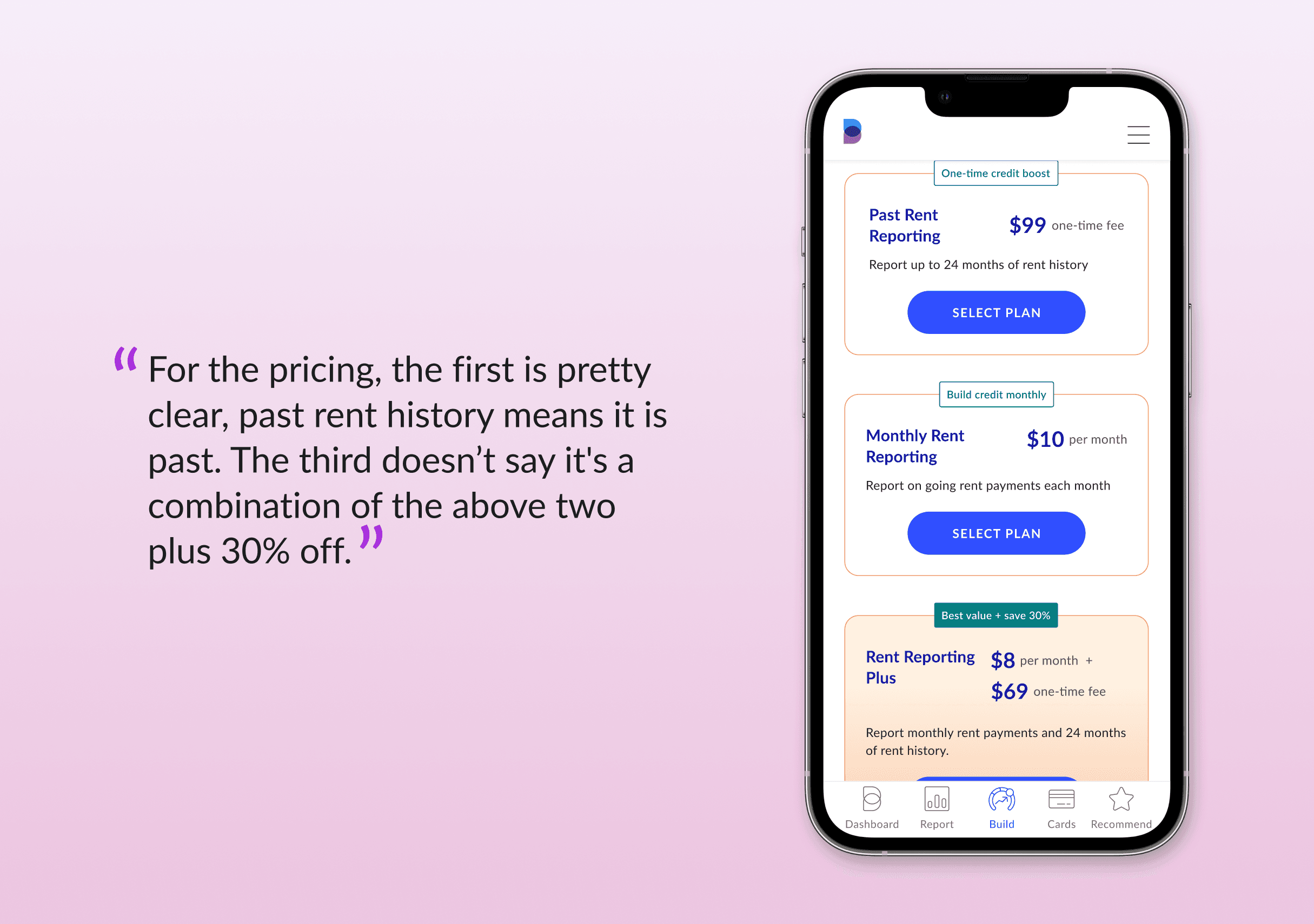 Borrowell's Rent Advantage product helps users build their credit score by reporting their rent to Equifax. Multiple payment plans were introduced, adding complexity to the product and its value proposition. I redesigned the product page to better highlight benefits, pricing and plan differentiators to improve adoption.