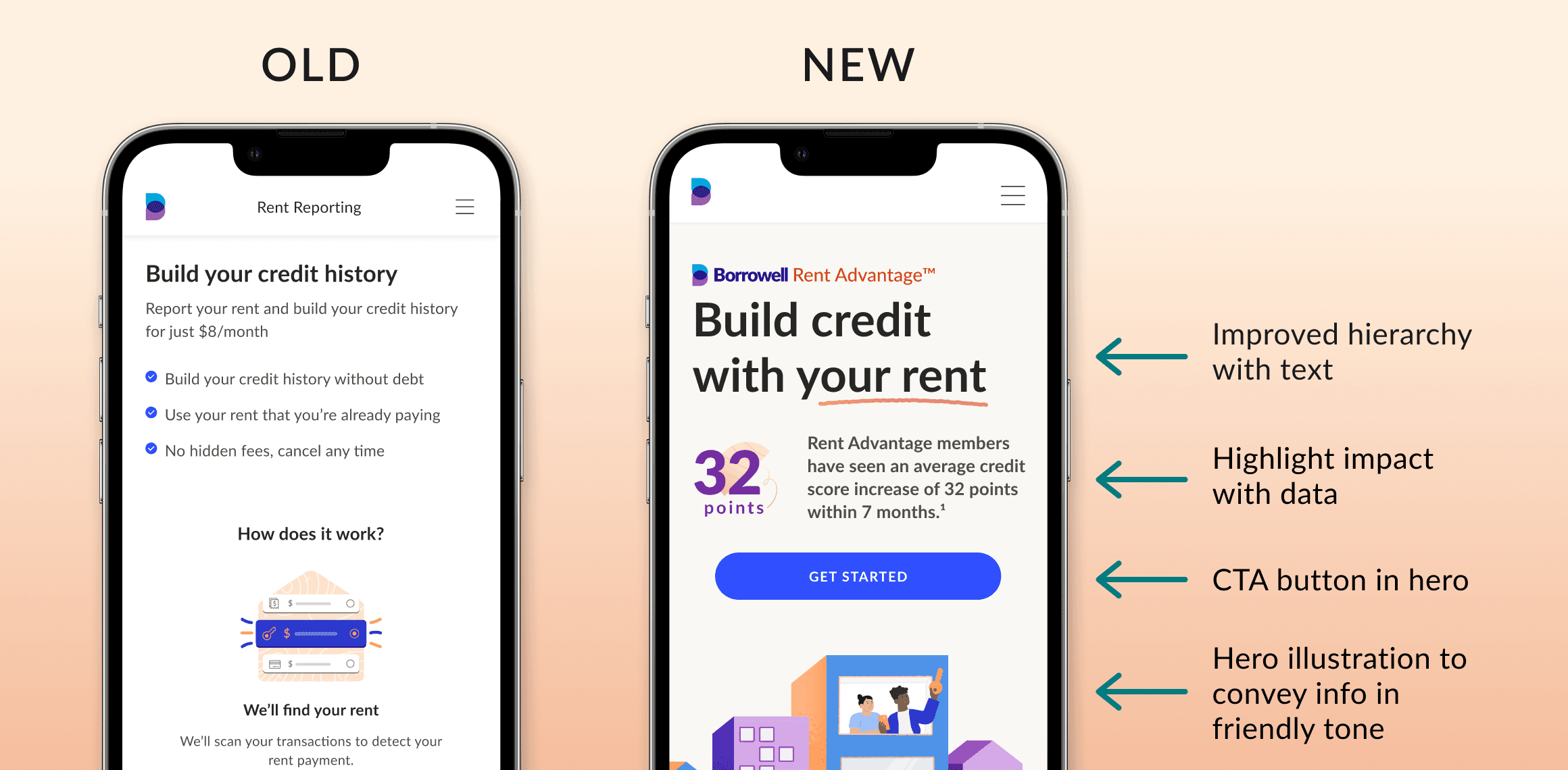To build trust and show social proof, I highlighted credit-building impact at the top of the page.