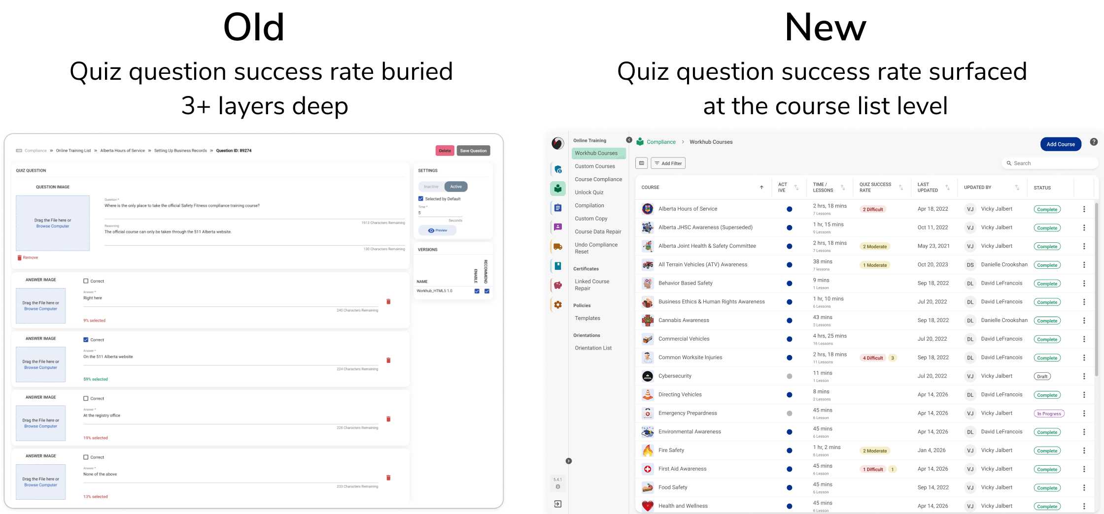 Reorganized courses, lessons, versions, and quizzes to reflect how users think about building content, rather than backend system structure.Clarified versioning and quiz logic