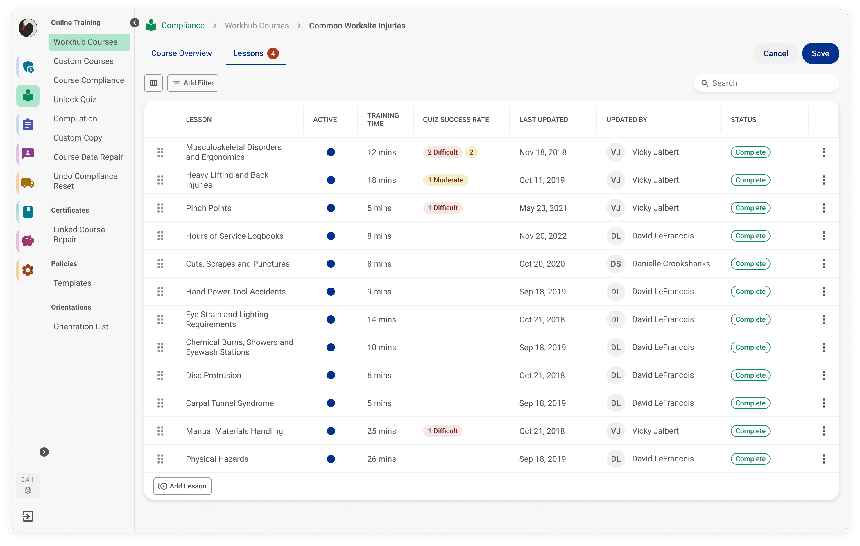 Workhub's internal Online Training tool is used by Content and Customer Success teams to build, manage and evaluate training courses. Over time, the system became increasingly layered due to its legacy structure and added functionality.